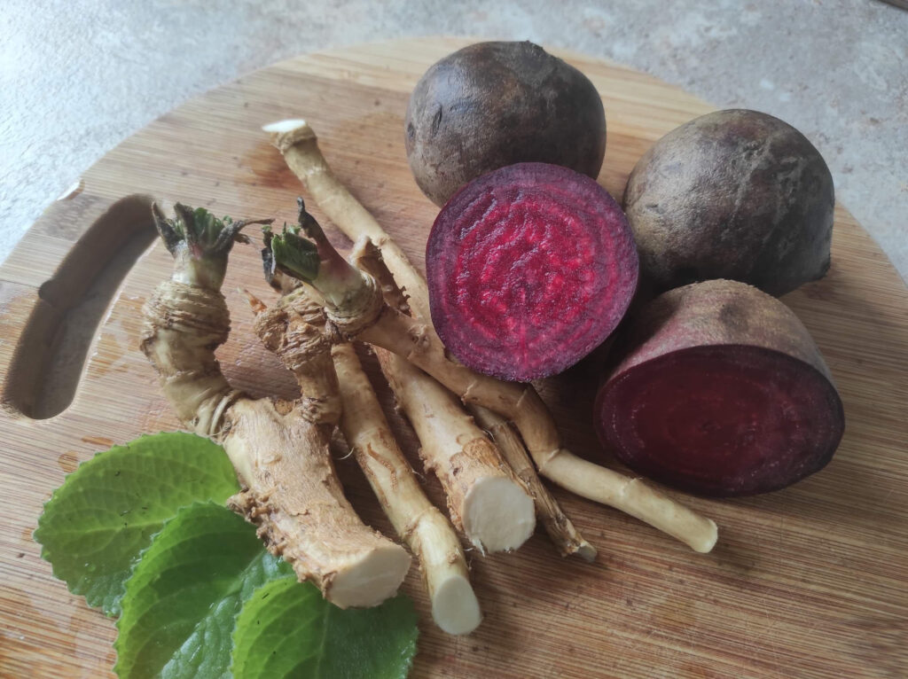 Czy można wyobrazić sobie święta Wielkanocne bez tradycyjnej białej kiełbasy z chrzanem? W związku z tym proponujemy chrzan oraz buraki, oczywiście ze swojskiej, domowej uprawy.
